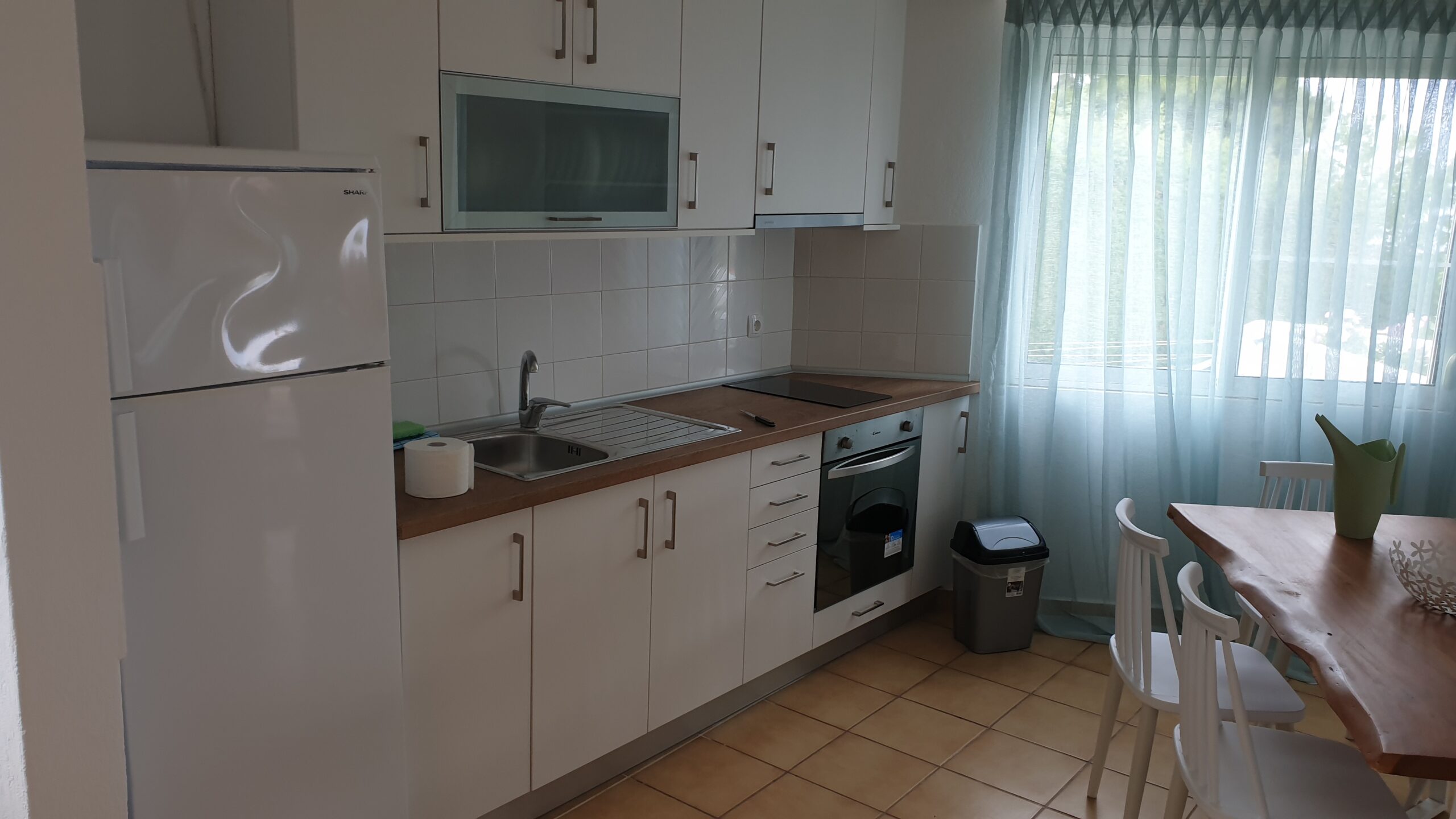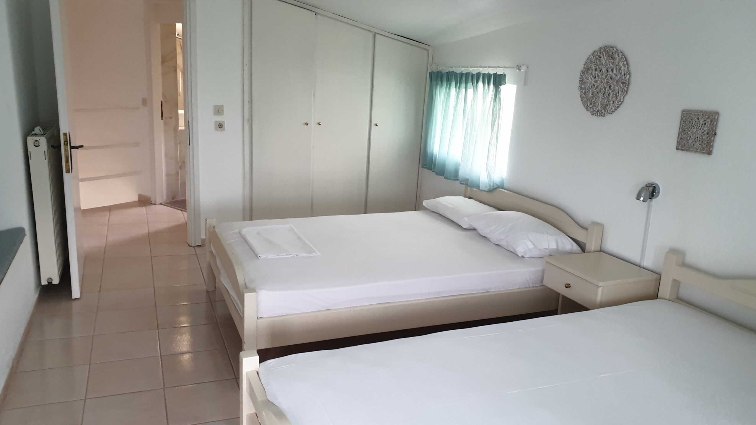 A large apartment (~90 sq.m.), accommodating/sleeping up to 7 people, is ideal for families or a group of friends. It consists of two distinct areas: ground floor (kitchen, dining room, living room, bedroom and toilet/bathroom) and attic (bedroom and toilet/bathroom). The apartment is air-conditioned, furnished and fully equipped.
